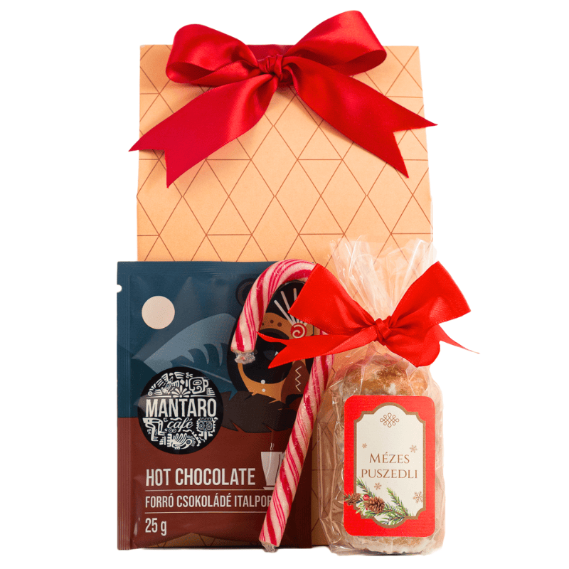 Egy csomagnyi melengető kényeztetés a hideg téli napokra. A krémesen lágy fehér forrócsokoládé, a vaníliás mézes puszedli és a klasszikus cukorpálca egyszerre idézik fel a karácsony meghitt hangulatát. Tökéletes kis ajándék, ami garantáltan mosolyt csal a megajándékozott arcára.